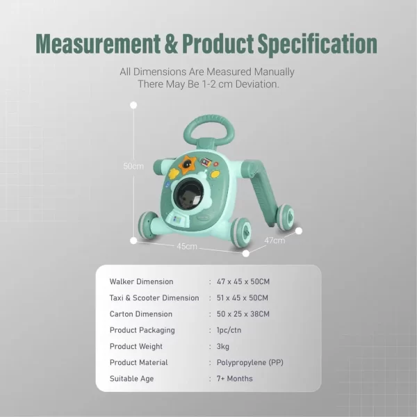 🔄 3 Dalam 1 Multifungsi – boleh ditukar daripada Baby Walker → Basikal Seat → Skuter.